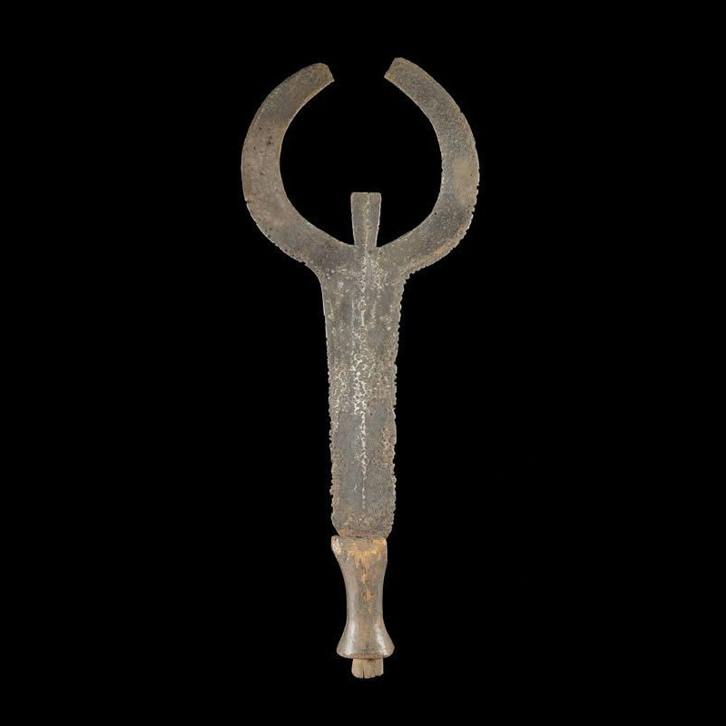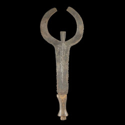 Magnifique et rare couteau d'exécution aussi appelé double Ngulu ou couteau de victoire, il symbolise un homme aux bras levés.