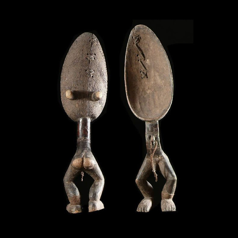 Très vieille cuillère de cérémonie, anthropomorphe, dont la particularité est de posséder deux pieds.