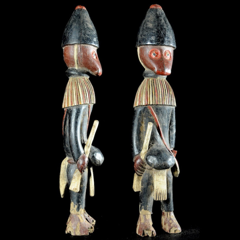 - et enfin des statuettes plus rares entre 40 et 190 cm représentant des guerriers du Poro, que l'on retrouve dans le Guenneguez "Art de la Côte d'Ivoire" page 90.