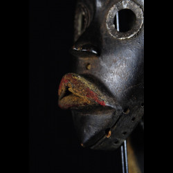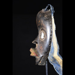 Souvent, pour les masques funéraires la bouche est largement arrondie, le masque chantant les louanges du défunt. (sources locales AM)