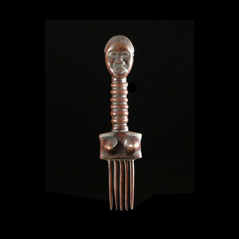 Le pique-cheveux et le peigne se transforment ainsi en de véritables ornements, dont la matière et la finesse mettent en avant le prestige ou le rang de celui ou celle qui le porte.D'après "Parures de tête" Dapper, page 28.